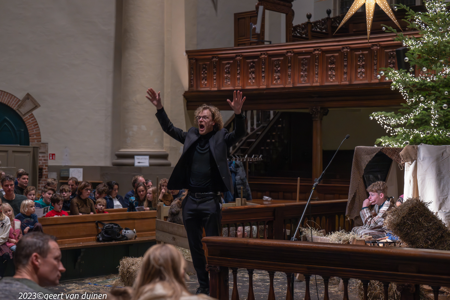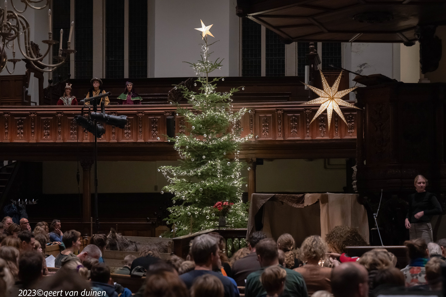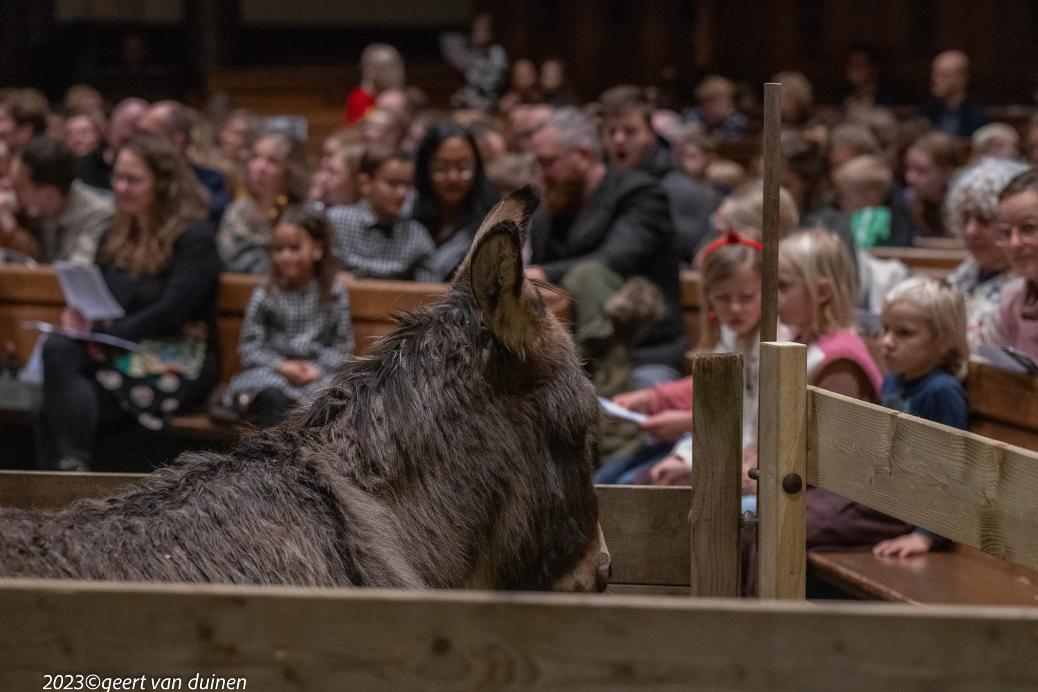 Gisteren, 24 december, vond in de Nieuwe Kerk in Groningen een Kinderkerstnachtdienst plaats. De kerk was omgetoverd tot een kerststal met een echte ezel. Tijdens de dienst op verschillende plekken in de kerk scene’s van de herder en de wijzen.