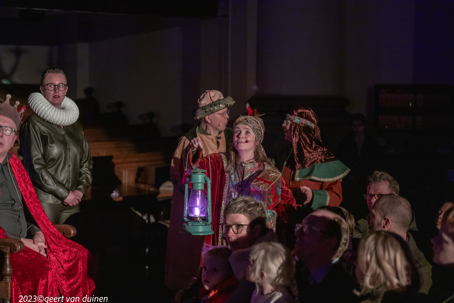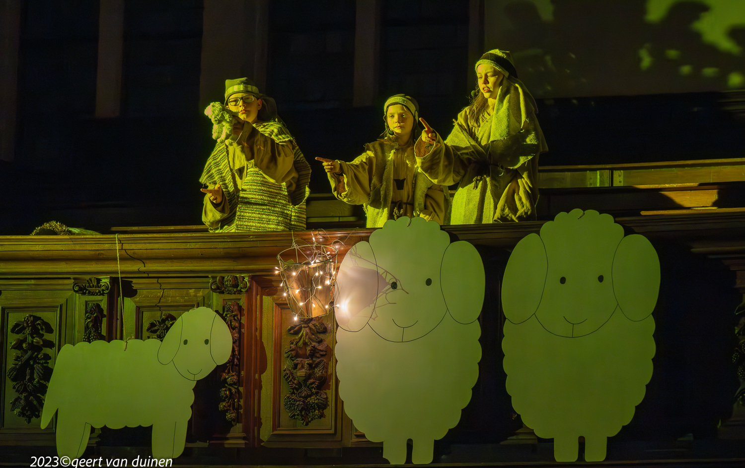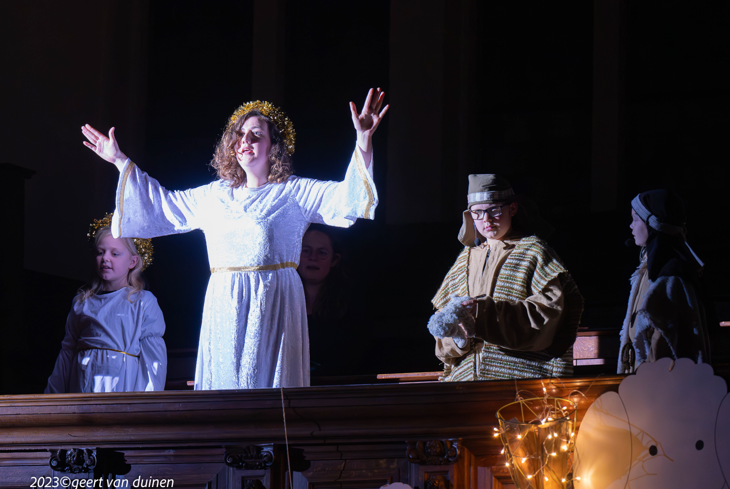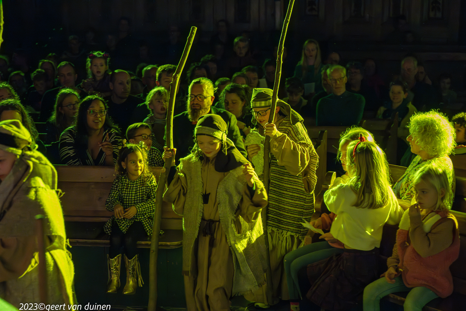 Gisteren, 24 december, vond in de Nieuwe Kerk in Groningen een Kinderkerstnachtdienst plaats. De kerk was omgetoverd tot een kerststal met een echte ezel. Tijdens de dienst op verschillende plekken in de kerk scene’s van de herder en de wijzen.