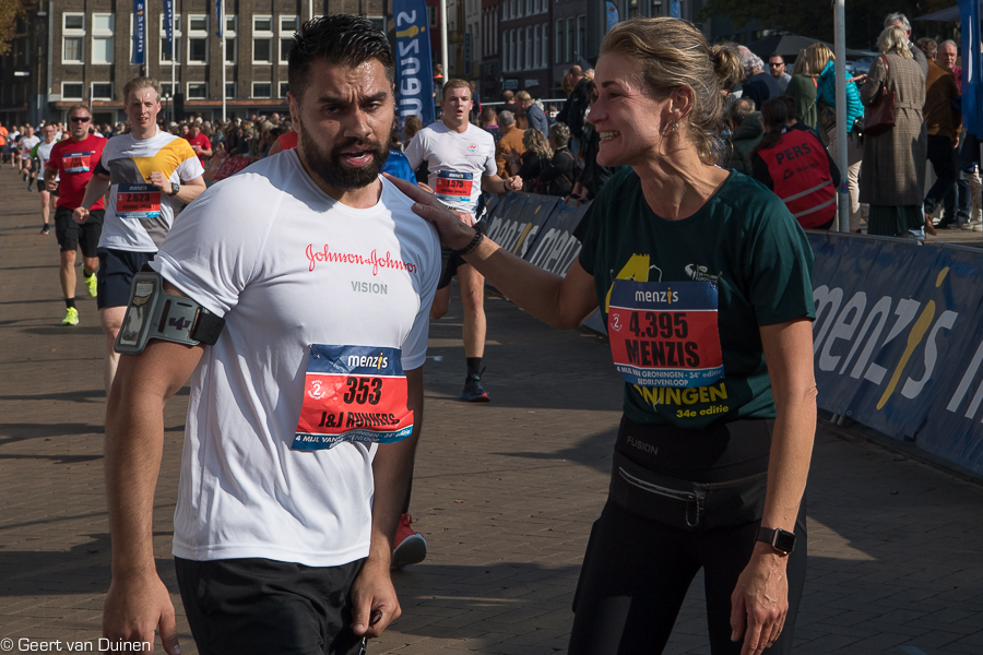 Groningen weer in beweging tijdens de 34e editie van de 4 Mijl van Groningen. Een loopevenement met prachtige weersomstandigheden en waar de speaker de deelnemers bij de finish opriep de handen hoog te houden voor het ontvangen van een daverend applaus. Sommige deelnemers hadden het even zwaar na het passeren van de finish.